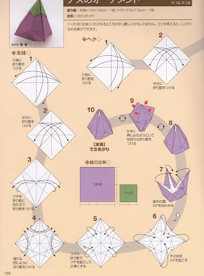 A árvore é a mesma de vários anos anteriores. Algumas bolas insistem em permanecer como as de espelhinhos e as vermelhas. No origami a incluída especial foi o NASU NO ONAMENTO (de novo a falta que faz um teclado hiraganá/katakaná). Também de autoria de MAKOTO YAMAGUCHI no mesmo livro anterior. ISBN978-4-88337-914-9 C0076. Traduzindo é "ornamento de berinjela". No esquema ele coloca as cores da mesma, mas nas páginas do livro são lindas em outros papeis e cores.