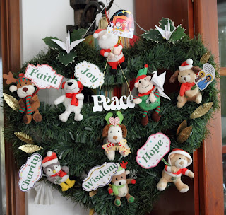 Numa semelhança com essa guirlanda confeccionamos para a casa de dois netos da Maria Dobradura uma guirlanda com bichos e novamente as palavras chaves que se desejam nesse mundo.