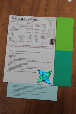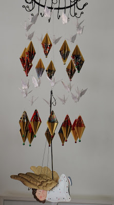 No lugar destinado ao presépios, que ainda não montamos, também colocamos origamis para a descida de nosso anjo.
