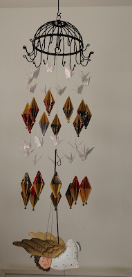 Nosso anjo que carrega o mundo já foi utilizado numa comemoração de batizado aqui de casa. Está com seu esquema de origami na postagem BATIZADO DE MARIA LUISA (MALÚ) E SOFIA.
