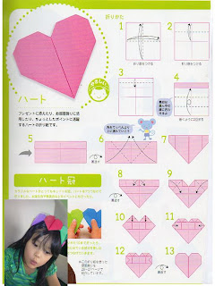 Como é enxurrada de corações de origami vai mais um modelito. Prestem atenção aos números, pois ele é tirado de livro ao estilo japones que vem de trás para a frente e os passos não estão seguindo a nossa forma de sequência. Portanto verifiquem passo por passo numericamente.