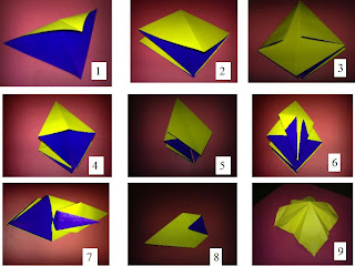 12-13-14 - Vai-se fazendo as dobras para se chegar ao 15 - a peça de kusudama.