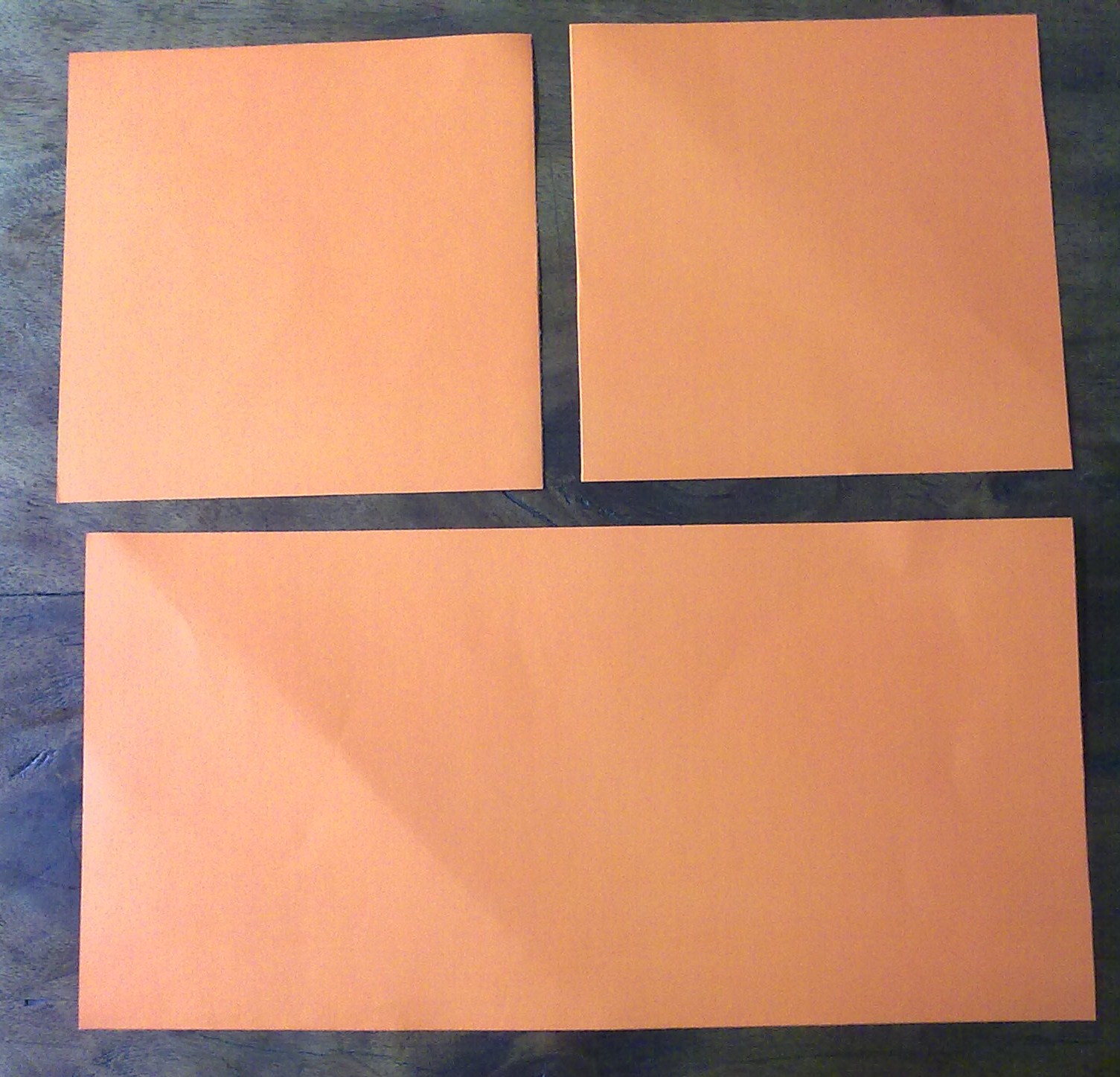 Em nosso caso utilizamos folha para scrap em tons laranja, lisos, listados, xadrez. Cada folha é dividida ao meio e teremos um retângulo de15X30 (em média, pois alguns papeis têm 30,5cm, mas é só cortar ao meio).