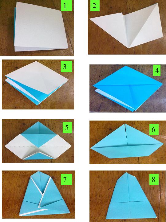 O diagrama é muito fácil. Dobra-se cada folha ao meio em diagonal.