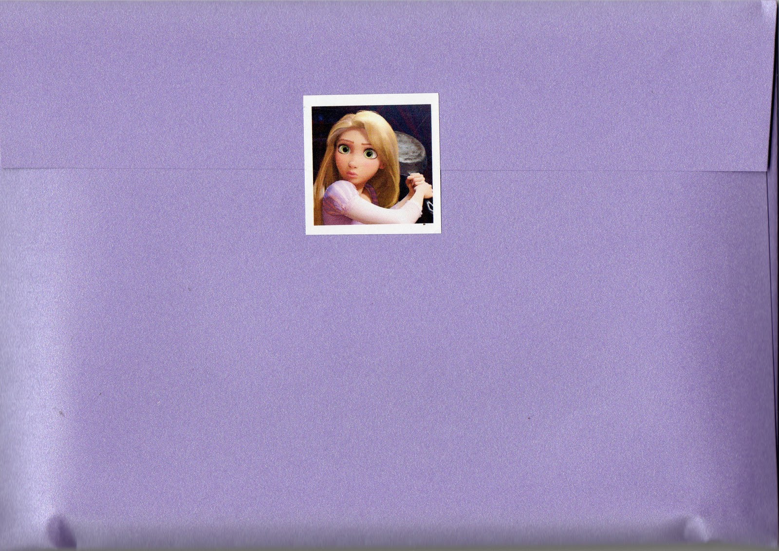 A sacolinha com lembrancinhas para meninas eram lilás (mais honestamente roxas) e a dos meninos verdes. Tinham cópias de desenhos da Letícia para o tema. A sacola das meninas tinha um pequeno origami da mesma flor que os convidados fariam em casa. Na sacola tinha uma caneca de princesa (Rica Festa)
