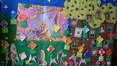MÓBILE - Como sempre nos aniversários da Letícia temos um móbile. Dessa vez com a peça tradicional de kusudama fizemos a Rapunzel. Utilizamos papeis da Vip Papers em rosa (stardream), lilás (stardream) e azul (vegetal - cromático), pink.