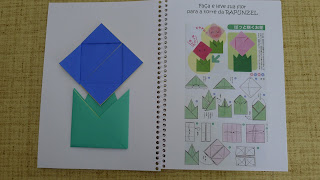 Na 3a. folha o esquema e na contracapa colocamos uma flor pronta de origami