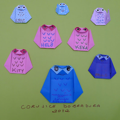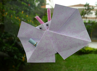 Esses coelhos, bastante simples, são de um livro que pelo menos traz um nome em nosso alfabeto UNOSODO. Acredito que o autor dos origamis seja NOBUKO NAZAKAWA. E algo diz que foi publicado em maio de 2010, lá no Japão e se aquele código lá de cima é válido esse livros também tem um ISBN978-4-7538-1293-6. Também comprado na Livraria SOL.